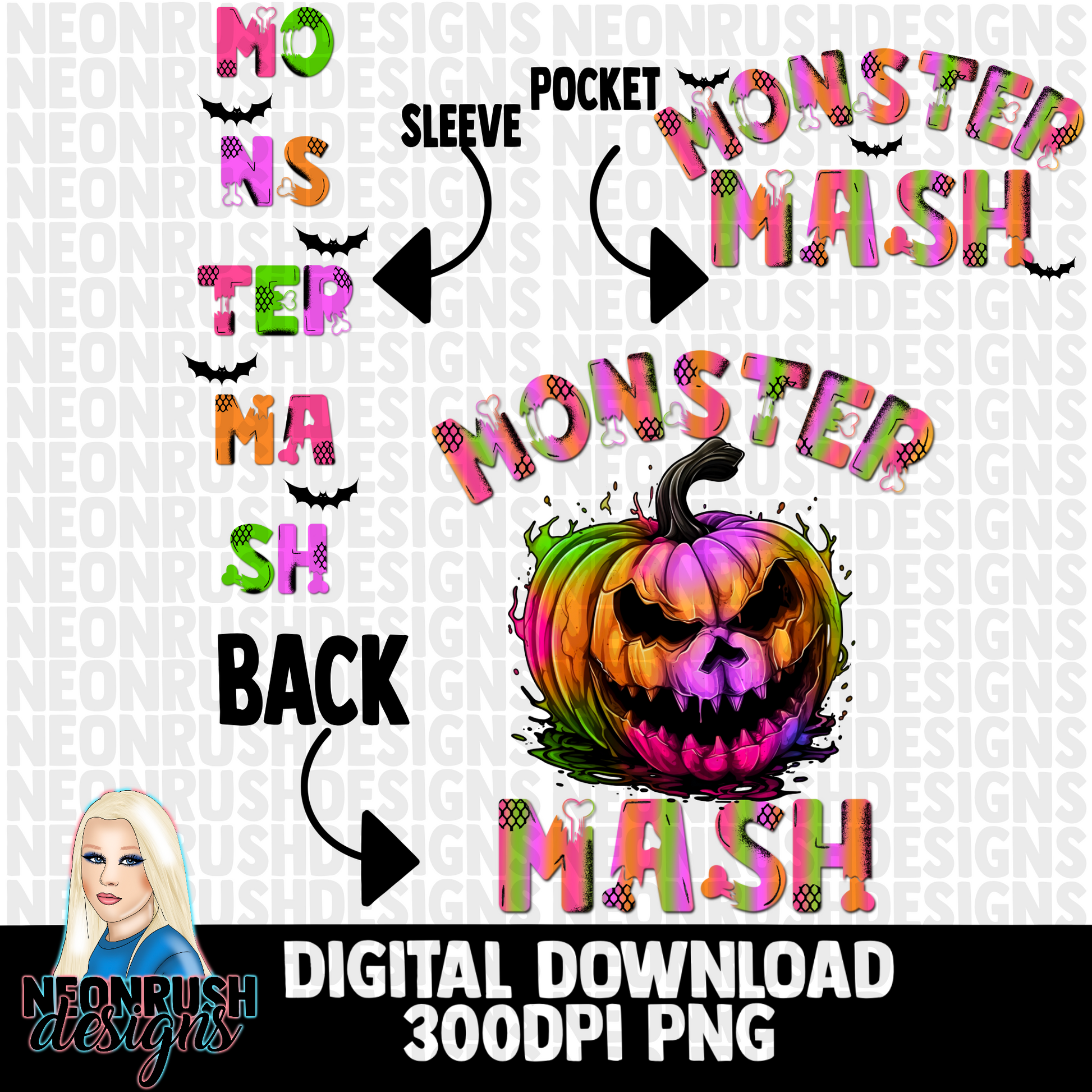MonsterMash, pocket, back and sleeve png digital download