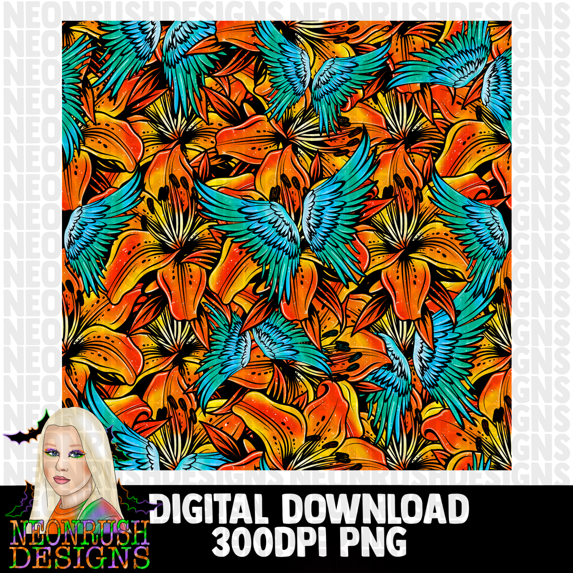 Wings floral seamless digital download